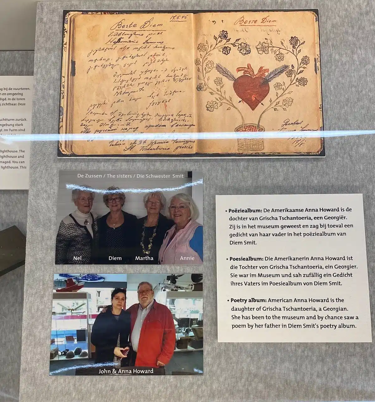 Mehr über die furchtbaren Kriegsgeschehnisse auf Texel, lernt man im Luftfahrt- und Kriegsmuseum am Texel International Airport. In einer umfassenden Ausstellung mit berührenden Briefen, Fund- und Kleidungsstücken, die einen tief in die Zeit von damals mit ihrem Schrecken und ihrer Angst hineinziehen, erfahren wir, dass die Faschisten damals mit extra Truppen vom Festland kamen, um nach den Aufständischen und Vaterlandsverrätern zu suchen und möglichst alle umzubringen. Die meisten Bauernhöfe auf der Insel wurden damals zerstört, weil in den Höfen Verstecke der georgischen Aufständischen vermutet wurden. Zeittafeln und Fotos zeugen von 1500 bis 4000 Toten. 550 Bunker sind auf der Insel zu finden. Viele kann man besichtigen.