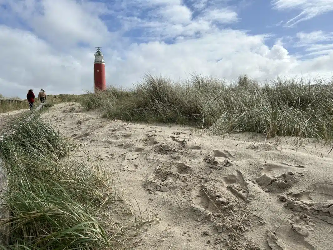 Wir fahren weiter nach De Cocksdorp an die Dünen an der Texeler Nordspitze. Über sie wacht ein großer roter Leuchtturm, das Wahrzeichen und auch das meistfotografierte Motiv der Insel. Wer die tolle Aussicht genießen will, muss eine Wendeltreppe mit 118 Stufen erklimmen. Auf den Zwischenetagen sind historische Räume aus der Zeit erhalten geblieben, als der Leuchtturm noch voll funktionsfähig war und von einem Leuchtturmwärter bedient wurde.