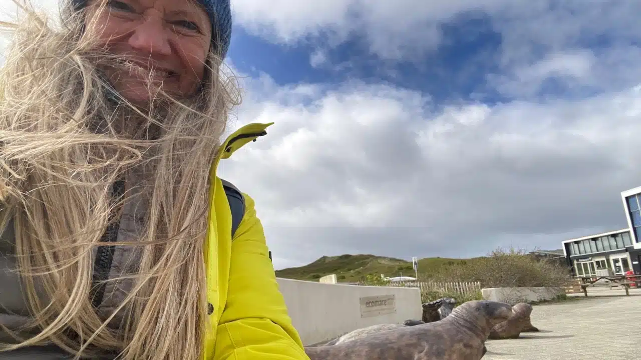 Einige Tiere bleiben aber auch in der Station. So die blinde Betty, die sich hier sichtlich wohl fühlt und zufrieden ihre Kreise unter dem lauten Geschrei der Möven im runden Außenbecken zieht. Ihre Barthaare helfen ihr bei der Orientierung. Bei der Show-Fütterung kommt sie deshalb nicht zu kurz. Nach einer Runde vorbei an den offenen Aquarien mit Dutzenden Arten von Meeresfischen, Seesternen, Schalentieren und Muscheln – in der Nordsee leben sogar Haie und Rochen lerne ich – zieht es mich in die angrenzenden Dünen.