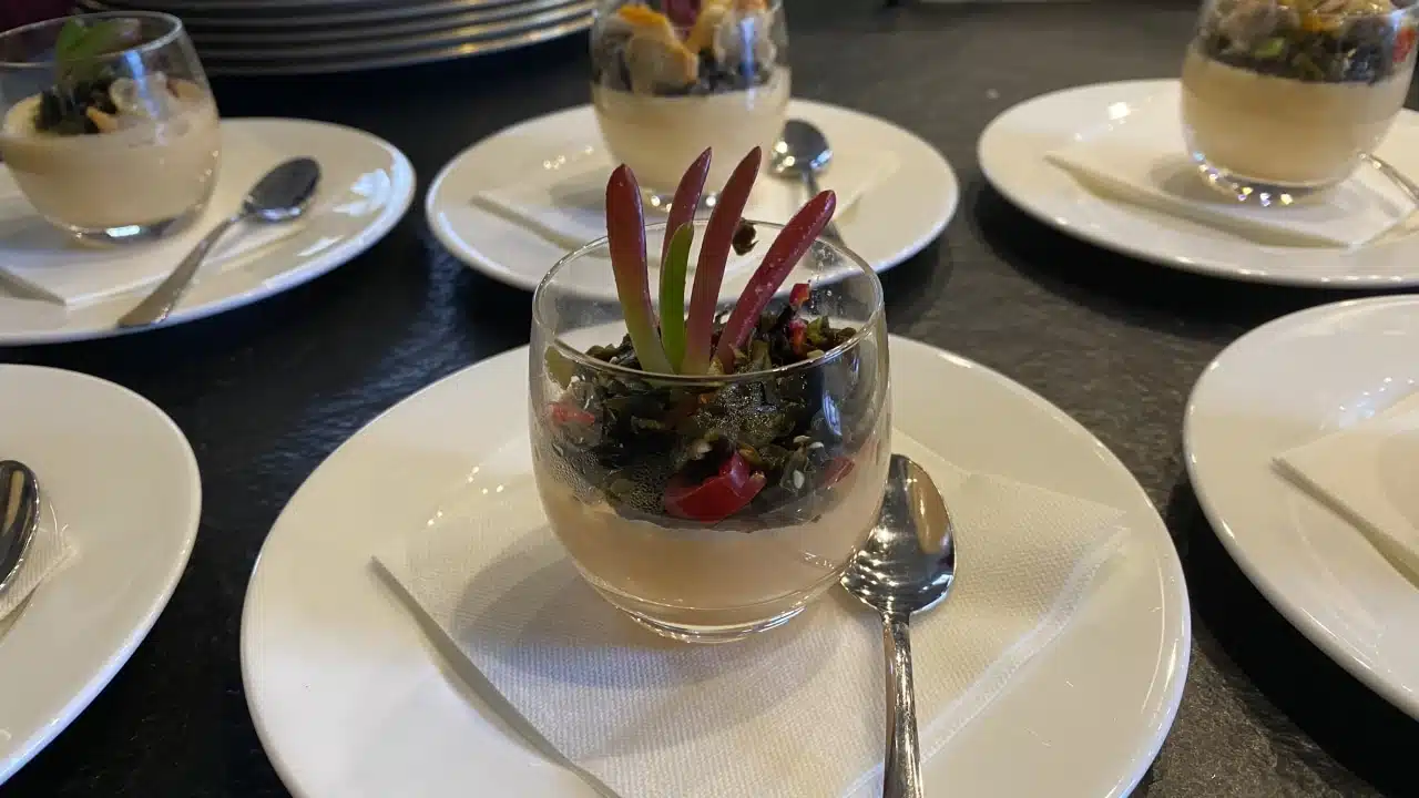 Den vitaminreichen Sanddorn aus dem Naturschutzgebiet verarbeiten wir während unseres Kochabends bei „Koch-Künstler“ Wessel Hollemann in De Waal. Wir werden bei ihm zu Hause aufs herzlichste empfangen, dürfen zwei Stunden als Gruppe unter Anleitung in der Küche des ehemaligen Pfarrhauses werkeln und sind hinterher verblüfft, was wir können. Wir hantieren mit Algen, Muscheln, Krabben, Lamm. „Alles von lokalen Produzenten“, freut sich Wessel Hollemann. Anschließend genie- ßen wir gemeinsam unser selbstgezau- bertes Menü in gemütlicher Atmosphäre am schön gedeckten Tisch, während es draußen stürmt und bläst. Morgen wird die Sonne wieder scheinen. Typisch Texel eben. Eet smakelijk! (Guten Appetit!)