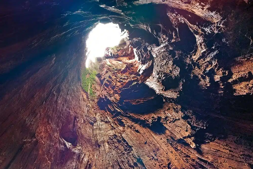 Kurios: Ein Baum ist innen hohl, dennoch treibt jedes Jahr frisches Grün.
