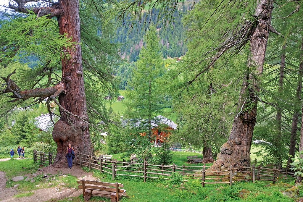 Bei einer Wanderung im Ultental nicht weit von Meran stoßen Urlauber auf die wohl ältesten Nadelbäume Europas in dem von jahrhundertealten Bauernhöfen geprägten Tal. Eine schöne Parzelle für den Wohnwagen gibt’s am Teileingang in Völlan.