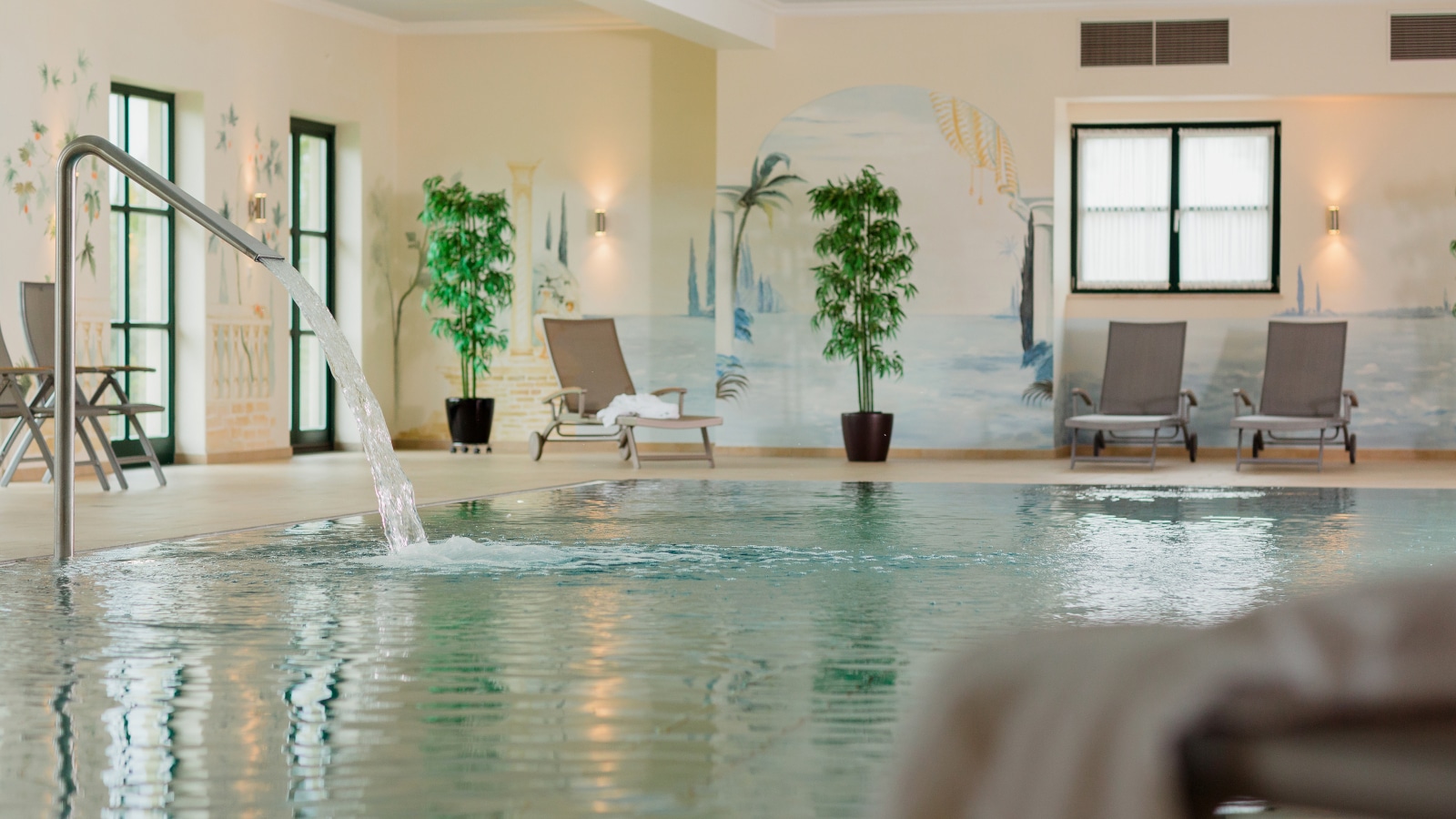 Körper und Seele sehnen sich nach Achtsamkeit, Entspannung und wohltuender Wärme? Dann ist es höchste Zeit für eine Wellness-Auszeit im Vital CAMP Bayerbach. Das mit illusionistischen Malerei- en gestaltete Thermalhallenbad und der atmosphärische Saunabereich strahlen eine angenehme Ruhe aus – der ideale Ort zum Entspannen und Energie tanken. Das circa 32° warme Wasser auf Schwefelbasis wirkt beruhigend, stärkt die Abwehrkräfte und lockert verspannte Muskulatur. Eine Wohltat