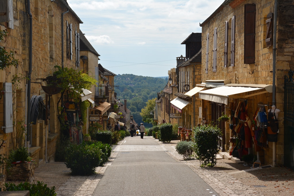 Wir beginnen unsere Entdeckungsreise – vorerst noch abseits vom Fluss – im östlich gelegenen Sarlat-la-Canéda. Die quirlige Mittelalterstadt gilt als Herzstück des Périgord Noir und ist zu Recht eine der beliebtesten Adressen der Dordogne. Mit entsprechend großen Augen bummeln wir durch die verwinkelten Kopfsteinpflastergassen, vorbei an uralten Holzfachwerkhäusern, prunkvollen Stadtvillen und Patrizierhäusern aus der Renaissance, die hier wie selbstverständlich nebeneinanderstehen. Sehr hübsch ist der weiträumige Marktplatz mit dem barocken Rathaus – perfekte Kulisse für das beliebte Theaterfestival, das hier immer Mitte Juli stattfindet.