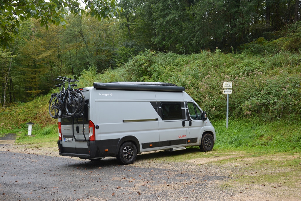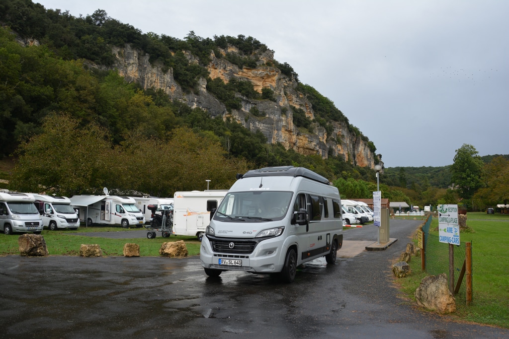 Wir folgen Augen und Nase weiter bis zum Place de la Rode, wo ein sehr hübsches Restaurant noch einen Platz frei hat. Der Familienbetrieb bietet köstliche hausgemachte Speisen, einen tollen Service und faire Preise. Beglückt von diesem ersten Tag checken wir im Camping Municipal de Cenac unterhalb von Domme ein. Er liegt direkt am Fluss und wir stellen unser Gefährt ganz vorne am Wasser ab. Die Ausstattung ist schlicht, die Übernachtung jedoch günstig.