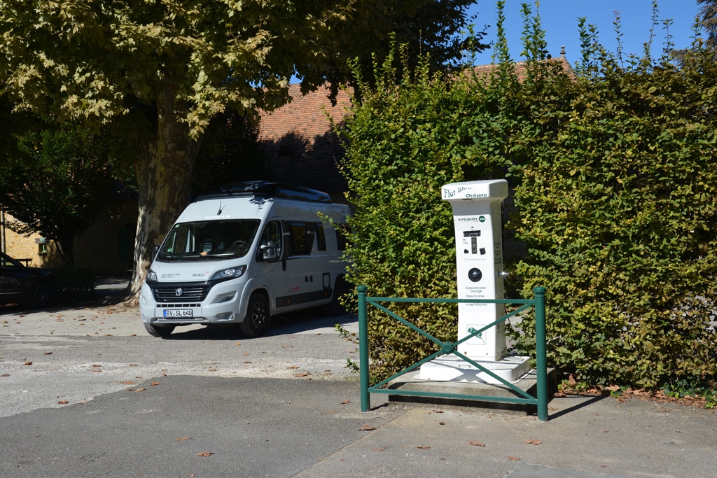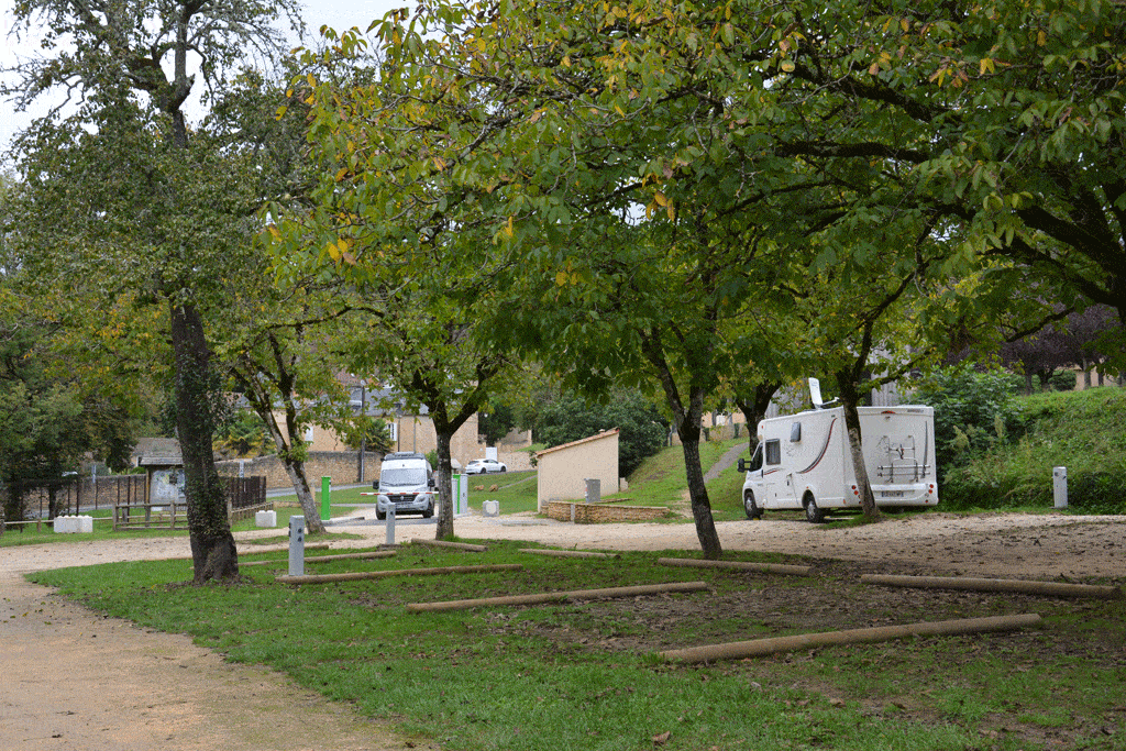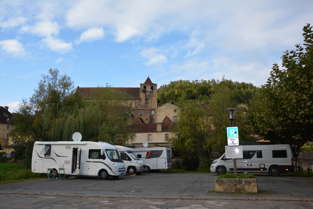 Für mobile Reisende bieten sich mehrere Schlafmöglichkeiten. Der gratis nutzbare Stellplatz befindet sich mitten im Ort neben der Salle des Fêtes. Für Ver- und Entsorgung werden zwei Euro fällig. Alternativ lässt man sich auf dem schönen, am Flussufer gelegenen 3-Sterne-Camping Les Berges de la Dordogne nieder.