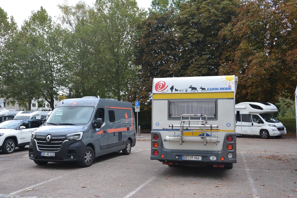 Der Stellplatz befindet sich schräg gegenüber vom Baldinger Tor am Stadtring – also sehr zentral, aber leider nicht ganz leise. Die Nutzung kostet gerade mal drei Euro. Es gibt Wasser und Strom sowie ein sehr gepflegtes, gratis nutzbares Toilettenhäuschen. Ein toller Service der Stadt.