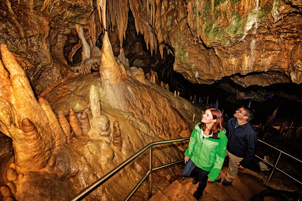 Als typisches Karstgebiet finden sich in der Fränkischen Schweiz über 1.000 Höhlen. Zahlreiche mittelalterliche Burgen und Ruinen thronen hoch über romantischen Tallandschaften, in die sich kleine Dörfchen mit süßen Fachwerkhäusern schmiegen. In zauberhaftes weiß-rosa kleidet sich die Landschaft im Frühling, wenn die unzähligen Obstbäume blühen. Die Fränkische Schweiz zählt zu den größten zusammenhängenden Süßkirschenanbaugebieten Europas. Wer mit dem Wohnmobil unterwegs ist, findet schön gelegene Stell- und Campingplätze, nicht selten direkt an einer der vielen Thermen.