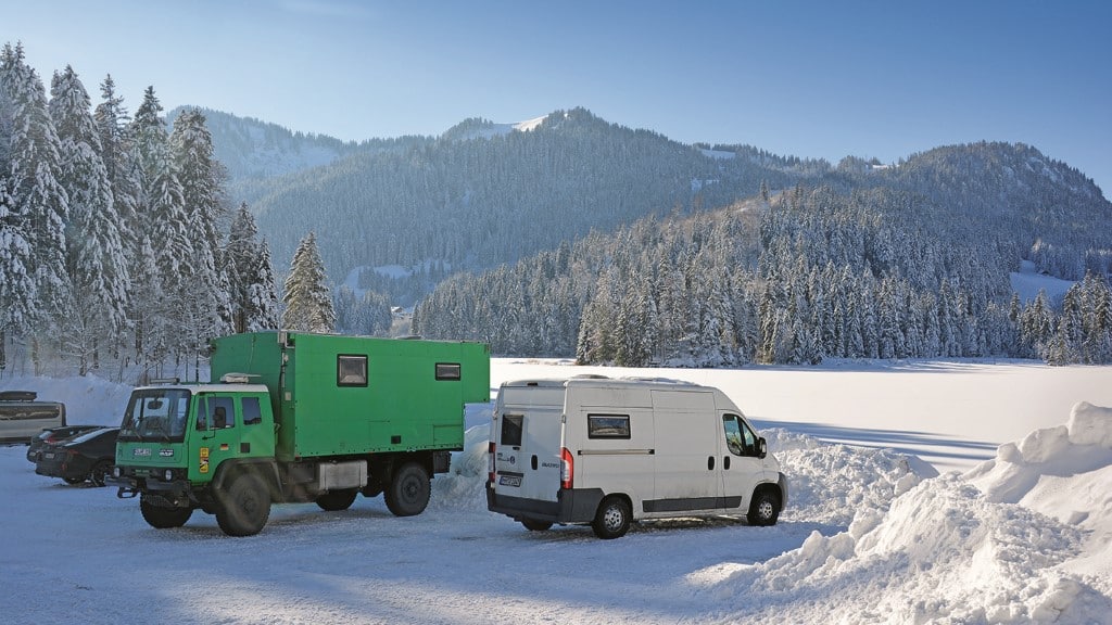 Ob Skifahren, Snowboarden, Rodeln oder mit Schneeschuhen wandern. Auch im Winter ist das Wohnmobil der perfekte Reisebegleiter in die Berge. Zumindest wenn man sich und sein Fahrzeug ein bisschen auf die kalte Jahreszeit vorbereitet. Wie’s geht, erklärt unser Ratgeber zum Thema Wintercamping. Wer direkt an der Piste nächtigt, genießt einen tollen Vorsprung vor all denen, die sich morgens erst über volle oder vereiste Straßen bis ins Skigebiet quälen müssen. Der frühe Camper-Vogel vermeidet außerdem die Schlangen am Lift und saust als einer der ersten durch den noch frischen pudrigen Schnee. Nach einem sportlichen Tag in der Kälte gibts direkt nach der Abfahrt in der kuschelig warmen Camper-Küche einen heißen Tee. Herrlich.