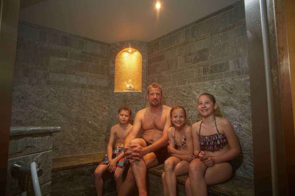 Doch nun zum Family-Resort Kleinenzhof selbst: Dieser 5-Sterne-Campingplatz ist eine echte Perle: Zwischen den prachtvollen Wäldern ducken sich schöne Stellplätze, Mobilheime und Ferienwohnungen in die Natur, die Sanitärgebäude und Mietbadezimmer sind schlicht, edel und sauber. Dazu trumpft das Family-Resort Kleinenzhof mit einem Hallenbad, einer Sauna und einem Dampfbad auf. Im Fitnessraum können Sie sich auspowern, im Restaurant verwöhnen lassen und im Minimarkt den Brötchenservice nutzen. Kurzum: Hier bleiben keine Wünsche offen!