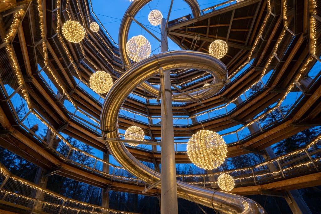 Das klingt in Ihren Ohren gut und so, als würden Sie diesen wunderschönen Platz während Ihres Urlaubs kaum verlassen wollen? Das verstehen wir – und dennoch empfehlen wir Ihnen noch einen abendlichen Ausflug: zum nahegelegenen Baumwipfelpfad Schwarzwald. Denn der verwandelt sich vom 30. November 2024 bis zum 2. Februar 2025 in eine magische Winterlandschaft, in der zum Beispiel glitzernde Eichhörnchen über den Weg flitzen und eine zauberhaft-leuchtende Hirschfamilie zwischen den Baumstämmen steht.