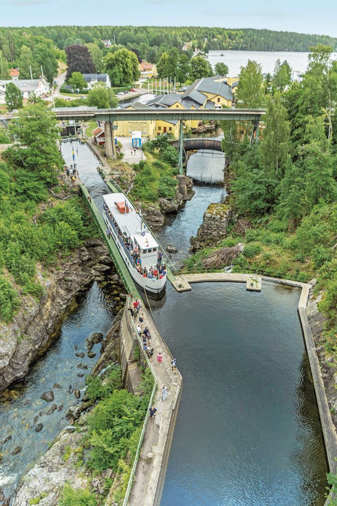 Trollhättan verfügt über einen schön gele- genen Wohnmobil-Stellplatz mit Blick auf den Kanal. Ein idealer Übernachtungsstopp, um am nächsten Morgen entlang des Trollhättan-Kanals nach Göteborg aufzubrechen.