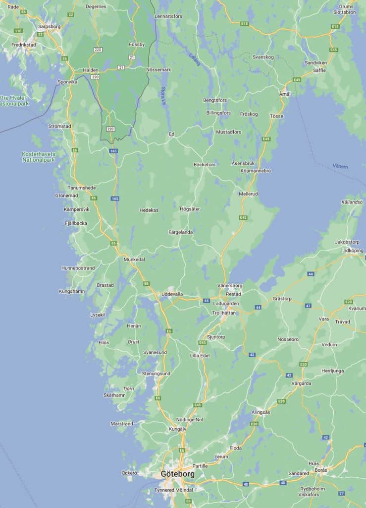 Die Region Westschweden gliedert sich in drei Provinzen: Bohuslän an der Küste sowie Dalsland und Västergötland im Hinterland, die beide an den Vänern, Schwedens größten See, grenzen.