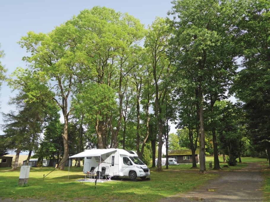 Reisemobile und Caravans stehen unter hohen Bäumen, die sich leise nur im Wind wiegen. Auf der Koppel neben dem weitläufigen Wiesengelände grasen Pferde von Wanderreitern. Die haben ihre Zelte aufgeschlagen. Die Szenerie verströmt Ruhe. Kein Wunder: Die Anlage befindet sich an einem Ort, den angeblich schon Germanen besiedelt haben. Womöglich huldigten die grauen Vorfahren hier einst in einem Tempel der Frühlingsgöttin Ostara. Heute stehen hier, wie profan, Wasch- und Gästehaus, aber auch ein Restaurant. Campingplatz Domäne heißt dieses Refugium zwischen Stiege und Hasselfelde im Ostharz.