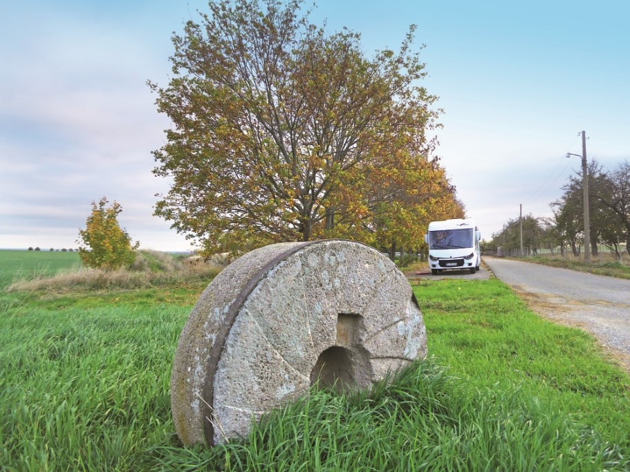 Ländlicher geht’s kaum. Der Stellplatz an der Mühle am Ettersberg, einem abseits gelegenen, winzigen Teil des mit gerade mal 300 Einwohnern ebenfalls nicht gerade riesigen Ortes Heichelheim, birgt einige Überraschungen. Und das, obwohl die Gemeinde so klein ist, dass sie am 1. Januar 2019 mit weiteren Orten der Verwaltungsgemeinschaft Nordkreis Weimar zur Landgemeinde Am Ettersberg zusammengeschlossen wurde. Das verheißt einen ruhigen Abstecher mit dem Reisemobil, das hier auf dem Stellplatz am Rande eines weitläufigen Geländes rund um die Mühle von 1829 steht.