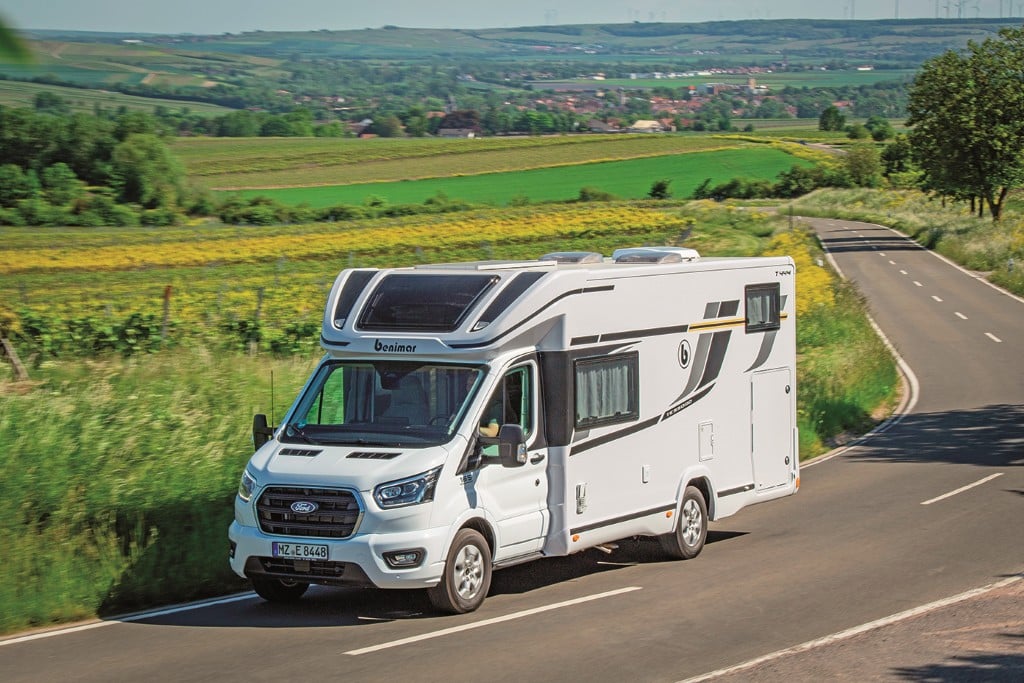 Teilintegrierte für Familien mit Face-to-Face-Sitzgruppe, Hubbett und Querbett über der Heckgarage sind momentan bei nur wenigen Herstellern zu finden. Der spanische Anbieter Benimar führt mit dem 7,35 Meter langen Tessoro T 444 auf Ford Transit mit Werkstiefrahmenchassis solch ein Modell im Programm. Die solide Kabinenkonstruktion wird in Rundum-GfK-Sandwich-Manier mit wasserabweisender XPS-Isolierung und Rahmenfenstern gefertigt.