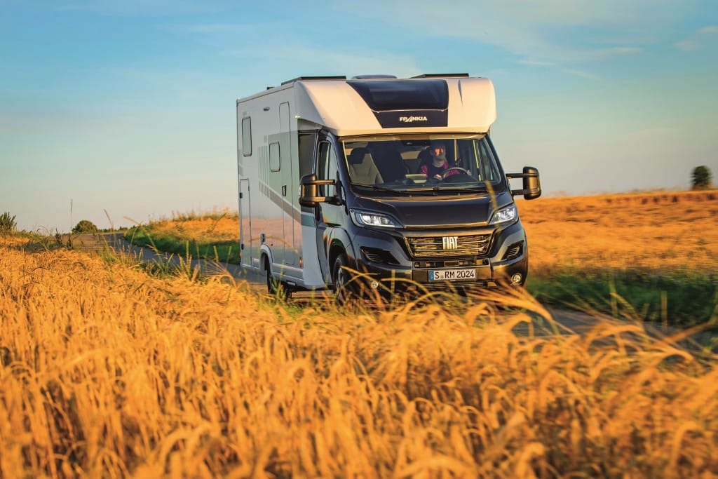 Frankia ist in erster Linie bekannt für hochwertige Voll- und Teilintegrierte mit Doppelboden. Der Now auf Fiat Ducato verzichtet darauf, aber nicht auf Frankia typische Qualitäts- und Einrichtungsmerkmale. Aufbau top: 50 Millimeter starke Sandwich-Bodenplatte mit GfK-Unterseite, Wände aus 31 Millimeter dicken Sandwichwänden mit Alu-Außen- und Innenseite. Das Dach fertigt Frankia aus 31-Millimeter-Sandwich mit GfK-Oberseite. Isoliermaterial des holzfreien Aufbaus ist wasserabweisendes XPS, Rahmenfenster Serie. Abwassertank: frostsicher montiert. Gut durchdachtes Raumkonzept, viel Bewegungsfreiheit, schicke Einrichtung. Großes Schwenkbad mit Umbau zur Dusche. Große, beidseitig beladbare Garage. Gehobene Serienausstattung. Mit optionalen Hubbett für vier Personen Auflastung auf 3,65 Tonnen nötig.
