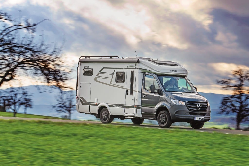 Den 6,74 Meter langen und 222 Zentimeter schmalen ML-T 580 liefert Hymer ab Werk auf Mercedes-Benz Sprinter mit Hinterradantrieb, 170-PS-Diesel und Neungang-Automatik 9G Tronic aus. Einzelbetten und eine L-Sitzgruppe im Bug sowie Längsküche und Schwenkbad mit Duschkabine markieren die Einrichtung. Wände und Dach des holzfreien Aufbaus entstehen, wie bei Hymer üblich, aus Sandwichplatten mit Alu-Außenseite und Isolierkern aus wasserabweisenden PU-Schaum. Die Sandwich-Bodenplatte mit GfK-Unterseite ist ebenfalls mit wasserabweisendem XPS isoliert. Die Versorgungstanks sind ab Werk frostgeschützt eingebaut, die Rahmenfenster Serie. Außerdem gefallen die gut zugänglichen Elektrik-Außenfächer, die auch beide Bordbatterien und den 12-Volt-Hauptschalter aufnehmen.