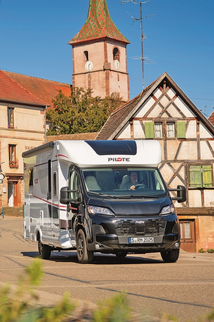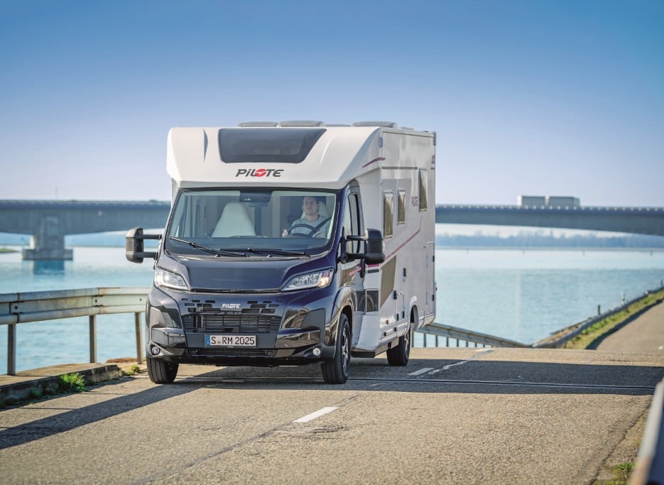 Der 7,2 Meter lange Pilote P 720 FC rollte in der Version Spring Edition – für dieses Modell eingestellt – auf Fiat Ducato mit Werkstiefrahmenchassis und 140-PS-Motor, Achtgang-Automatik sowie guter Basisausstattung inklusive Fahrerhaus-Klimaanlage, Tempomat, Lederlenkrad, Markise mit LED vom Band. Serie waren unter anderem Außenschublade, elektrisch absenkbares Hubbett, Rückfahrkamera, Kaffeemaschine, Zentralverriegelung für die Aufbautür und Autarkiepaket mit Solaranlage.