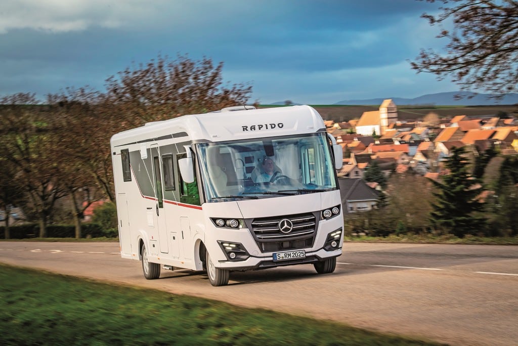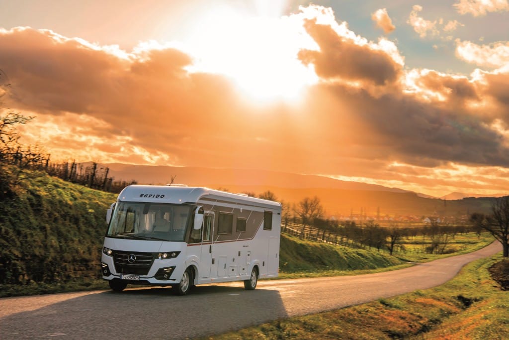 Die Top-Baureihe des bretonischen Herstellers Rapido rollt auf Mercedes-Benz Sprinter mit STC-Supertiefrahmen von Al-Ko, Frontantrieb, 170 PS-Maschine und Neungang-Automatik 9G-Tronic vom Band. Das Spitzenmodell der Serie ist 8,15 Meter lang, sein holzfreier und hochwertiger Aufbau – Dach, Wände und Boden – bestehen aus GfK-Sandwich mit wasserabweisender Sytrofoam-Isolierung. Rahmenfenster sind Serie. Der 29 Zentimeter hohe, isolierte und beheizte Doppelboden nimmt die Versorgungstanks, die Elektrozentrale sowie die Warmwasserheizung Alde Compact 3030 Plus auf. Die Wurzeln von Rapido liegen in der Herstellung hochwertiger Möbelstücke – das merkt man bis heute.