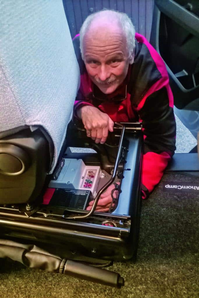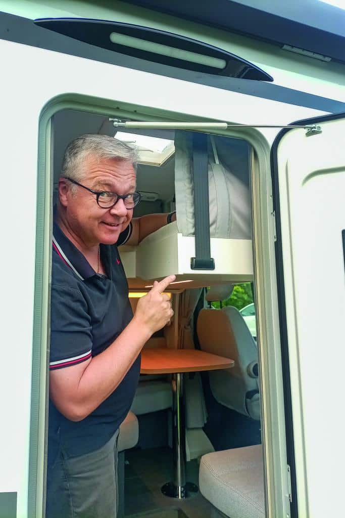 Weniger überzeugend: Zum Drehen der Vordersitze muss der Camper die Fahrerhaustüren öffnen, und bei geschlossenen Türen müssen die gedrehten Sitze fast 180 Grad zur Fahrtrichtung stehen. Das funktioniert im Fiat Ducato deutlich besser.