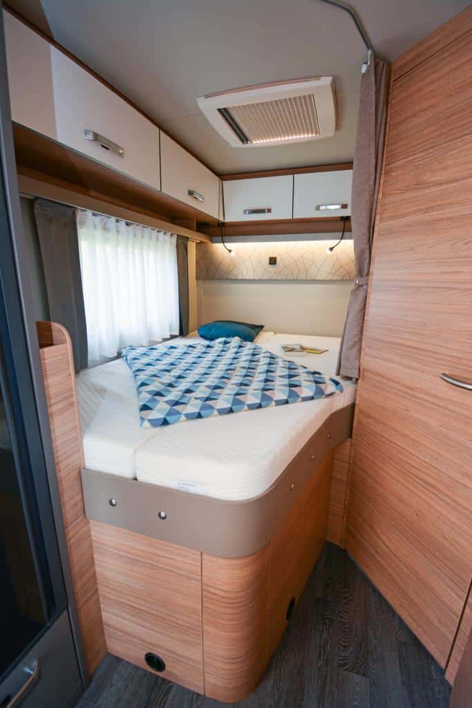 Große Pluspunkte des Grundrisses mit französischem Längsbett sind Bewegungsfreiheit und Raumgefühl – anders als bei Modellen mit hoch montierten Einzelbetten im Heck und Bad als Raumteiler in der Mitte, reicht die Blickachse im Cara Suite 650 MF von den Fahrerhaussitzen bis zur Heckwand. Hier steht man sich nicht so schnell im Weg, das klappt mit ein bisschen Übung auch bei der Tour zu viert.