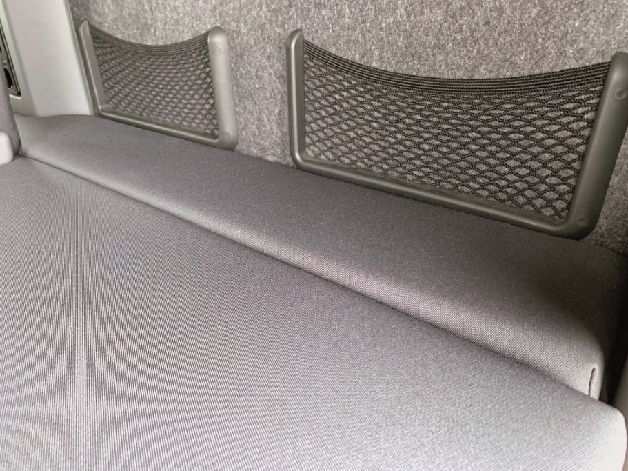 Der gekürzte Küchenblock bedeutet auf der Haben-Seite sehr gute Beinfreiheit bei gedrehtem Fahrersitz, auf der Soll-Seite aber, dass einige Staufächer entfallen. In der Kombüse gibt es ein Schubfach für das Besteck und ein 30 mal 30 mal 20 Zentimeter großes Staufach, über dessen Bodenblende auch der Wassertank samt Tauchpumpe zugänglich ist. Die restlichen Vorräte und das Gros des Kochgeschirrs finden deshalb im 62 mal 45 mal 26 Zentimeter großen Bettkasten Platz. In die Höhe wächst die Möbelzeile erst weit hinten im Fahrzeug. So bleibt trotz großer Spüle noch ein angenehmes Maß an Abstellfläche übrig. Der deckenhohe Kleiderschrank fällt hingegen entsprechend bescheiden aus und Regalböden fehlen. Zudem ist er vom Wohnraum aus nicht zugänglich. Ansonsten bleiben noch ein paar kleinere Staufächer und Gepäcknetze, die einiges an Kleinkram aufnehmen. Die leicht verschiebbare Schlafsitzbank ist eine Entwicklung der Schwestermarke Westfalia. Auf 101 Zentimeter Breite bietet sie drei gurtgesicherte Sitzplätze und zweimal Isofix.