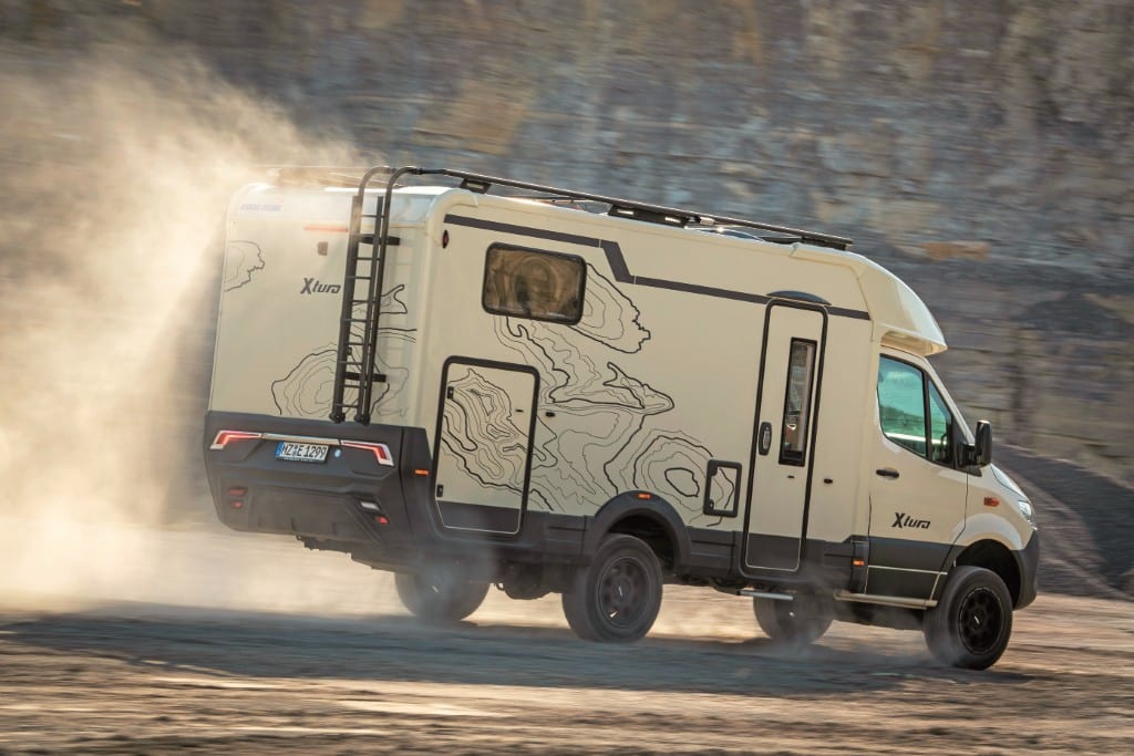 Doch der neue Eura Mobil Xtura XT 686 EF kann mehr: Mit Höherlegung, verstärkter Hinterachsfederung, Allradantrieb und auf Wunsch auch mit groben Stollenreifen will er das sein, wovon abenteuerlustige Camper träumen – ein Fernreisemobil, mit dem man touristische Pfade und asphaltierte Straßen verlässt und auf Schotter- und Schlammpisten neuen Abenteuern entgegenrollt.