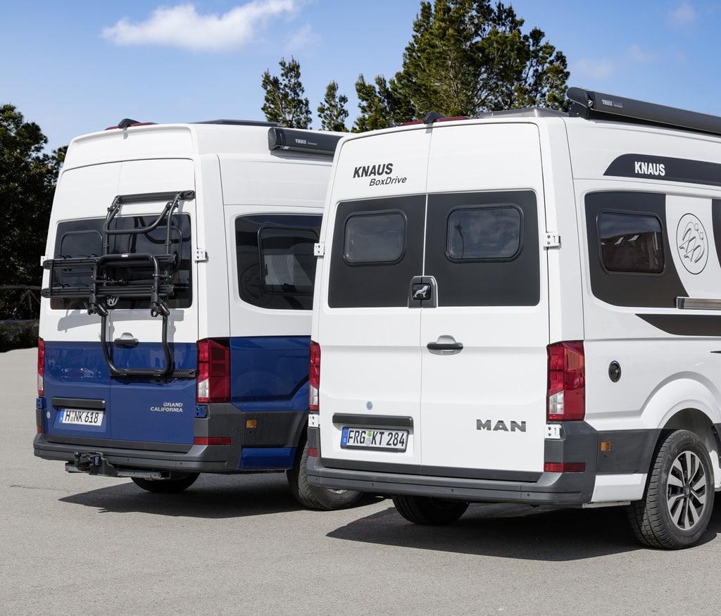 Doch was passt wirklich rein in den zwar sehr langen, aber vergleichsweise schmalen VW Crafter/MAN TGE? Bieten VW und Knaus das erhoffte Mehr an Platz im Vergleich zum Standard-Ducato? Und wie schlagen sich die XL-Kastenwagen auf der Straße? Reisemobil International hat die beiden spannenden Fahrzeuge zum direkten Vergleich gebeten.