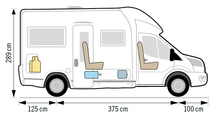 Serienausstattung u. a.: Fahrer- und Beifahrerairbag, ABS, ESP, Traktion Plus, Berganfahrhilfe, elektrische Fensterheber, Rahmenfenster, holzfreier Aufbau, Dach, Boden und Wände, Bugmaske und Heck GfK-Sandwich, Fahrerhaus-Klimaautomatik, elektrische Parkbremse, adaptiver Tempomat, Verkehrszeichenerkennung, Spurhalteassistent, Aufbautür mit doppelter Verriegelung, höhenverstellbarer elektrischer Teleskop-Esstisch, 150-l-Kompressorkühlschrank, 80-Ah-Batterie.