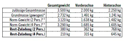 Bereits in der 3,5-Tonnen-Basis-Version bietet der Benimar Tessoro T 481 absolut praxisgerechte Zuladekapazitäten für zwei und auch für vier Camper. Allerdings ist der Stauraum knapp bemessen.