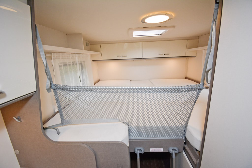 Neu bei Etrusco: der Piezozünder am zweiflammigen Gasherd neben der Spüle, der nun Streichhölzer überflüssig macht. Die Sitzbank der Halbdinette rüstet der italienische Hersteller mit zwei Dreipunkt-Sicherheitsgurten sowie mit höhenverstellbaren Kopfstützen aus, so dass das Fahrzeug auf insgesamt vier zugelassene Sitzplätze kommt. Der an der Seitenwand eingehängte Tisch lässt sich mit einem Zusatzbrett erweitern. Mit Höhenverstellung, variabler Sitzfläche, pneumatischer Lordosenstütze und je zwei Armlehnen sind die Vordersitze sehr gut ausgestattet.