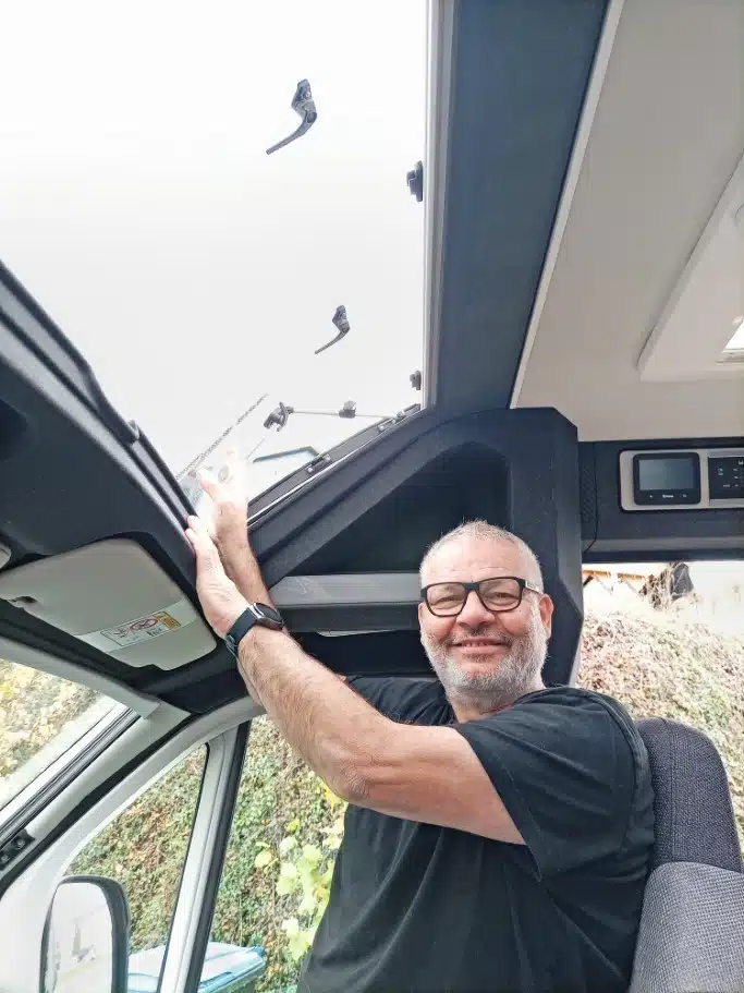 In der Dachfront über den Vordersitzen baut Knaus als Option ein Fenster samt Kunststoffmaske an der Außenseite ein. Im Testwagen, er entstammt noch der Vorserie, knarzt der Fensterrahmen selbst bei kleineren Fahrbahnunebenheiten. Der Hersteller verspricht, dies zum Serienstart zu beseitigen. Das Gleiche gilt für teilweise lieblos zugekittete Durchbrüche für Kabel und Rohre am Unterboden.