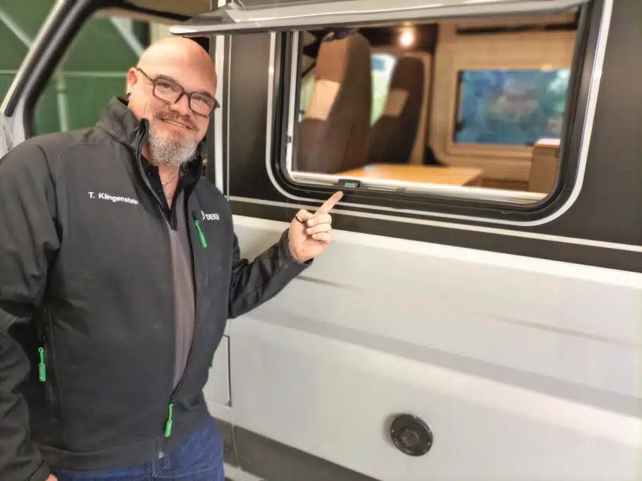 Der Hersteller fertigt Innenverkleidungen und Möbelelemente aus schwarzem expandiertem Polypropylen, das partiell die Aufgabe einer Isolierung übernimmt. Die Bauteile lassen sich passgenau fertigen und zudem mit einer optisch ansprechenden Oberfläche formen. So entdeckt man im neuen Knaus Fronten, die an ein Karbon-Geflecht erinnern.