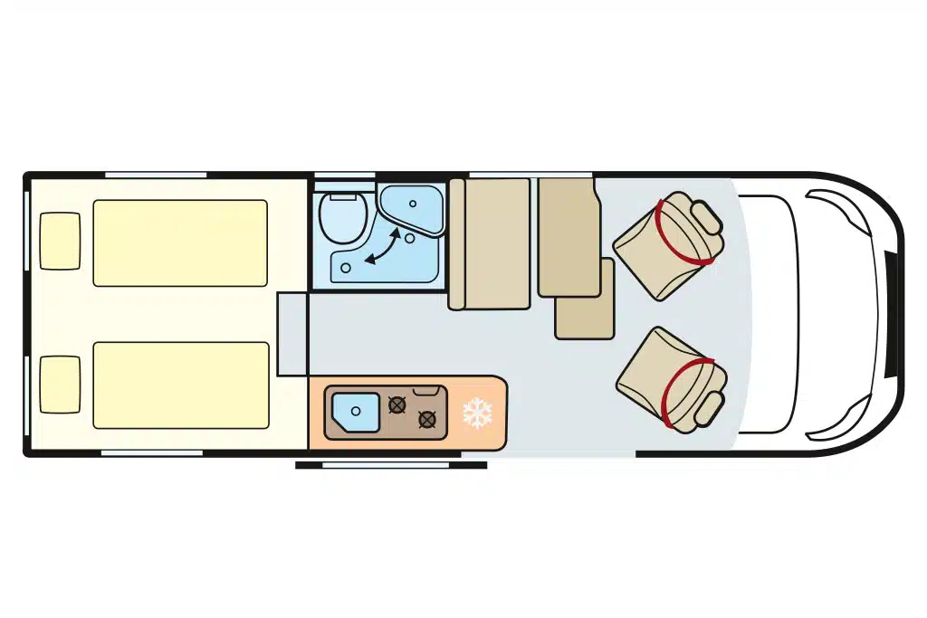 Basis: Fiat Ducato mit originaler Stahlblechkarosserie, 120/140 PS (88/103 kW) und Schaltgetriebe Grundrisse: vier Grundrisse; zwei mit Längs-Einzelbetten, zwei mit Doppel-Querbett Länge: 5,41 und 5,99 und 7,25 m Grundpreis: 66.990 bis 74.630 €