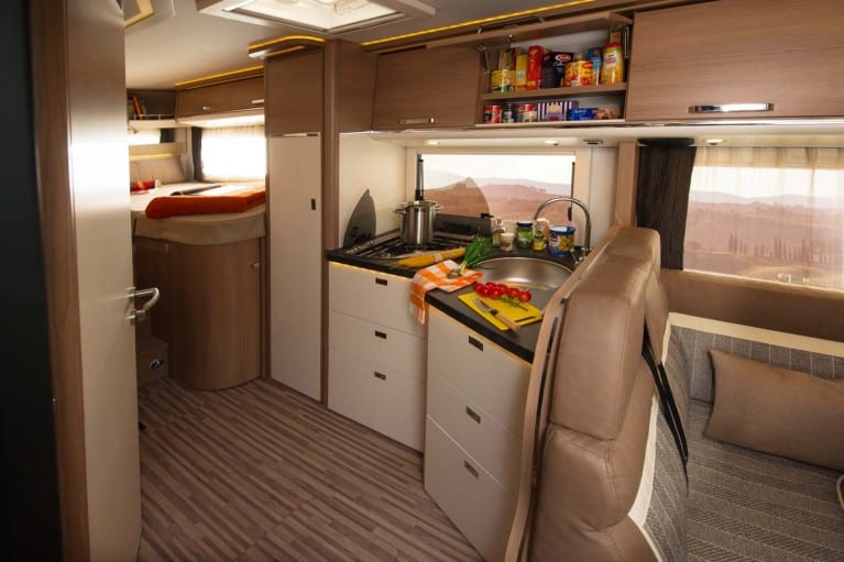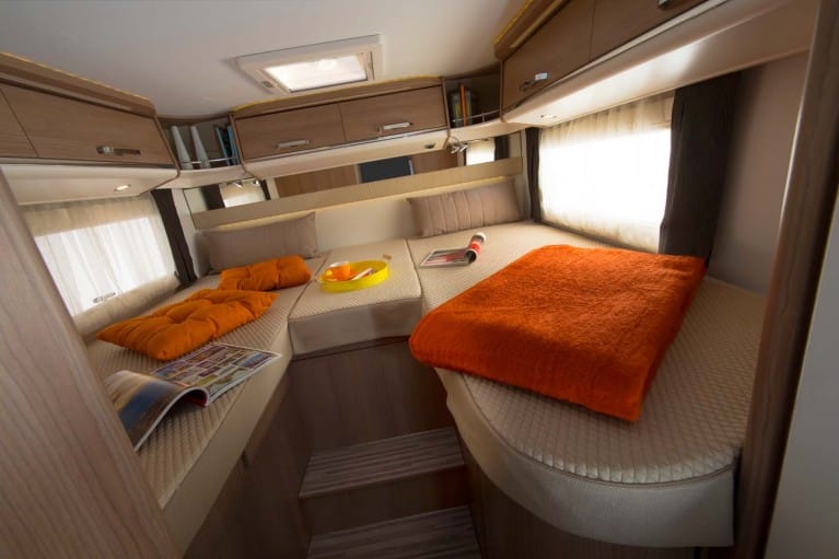 Der getestete Malibu T 460 mit einem Grundpreis von 64.590 Euro tritt den Test mit Einzelbetten im Heck, einem kompakten Bad mit integrierter Dusche, einer praktisch ausgestatteten Küche mit viel Ablagefläche, großer Spüle und 145-Liter-Kühlschrank sowie mit einer Halbdinette mit Seitensitz an.