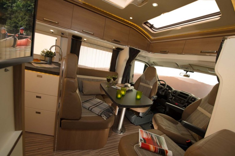 Basisfahrzeug des auf zwei Reisende ausgelegten Teilintegrierten ist der Fiat Ducato mit originalem 3,5-Tonnen-Chassis und 130 PS. Der sehr gut verarbeitete Testwagen indes ist mit dem optionalen 150-PS-Turbodiesel unterwegs – und bleibt bei allen Fahrmanövern trotz seines rund 2,20 Meter langen Hecküberhangs überdurchschnittlich gut zu beherrschen.