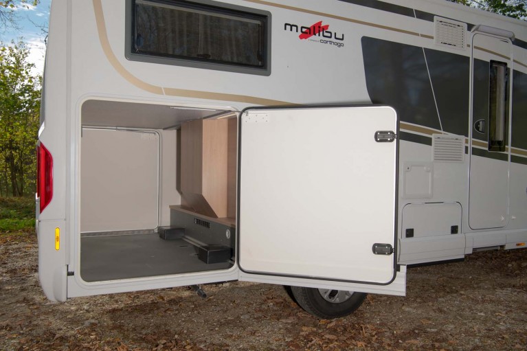 Ganz neu: Die Teilintegrierten der Tochtermarke Malibu bieten nun einen vollwertigen, durchgehenden, über Boden- und Außenklappen zu beladenden, isolierten und beheizten Doppelboden. So entsteht dank des 17, stellenweise 42 Zentimetern hohen Zwischenraums jede Menge zusätzlicher Stauraum.