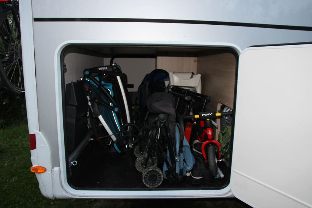 Durch das Queensbett im Heck ist die Höhe der Garage mit 98 Zentimeter nur bedingt für den Fahrradtransport geeignet. Die Heckgarage mit Rahmenabsenkung, Antirutschfläche, Verzurrösen und Innenbeleuchtung bietet dennoch großzügigen Stauraum und ist bis 150 Kilogramm Zuladung ausgelegt. Nicht ganz so praktisch: In der Garage ist auch der Gaskasten mit zwei Elf-Kilogramm-Gasflaschen untergebracht. So sind beim Gasflaschentausch zwei Türen zu öffnen, und auch eine hohe Stufe entpuppt sich als Hindernis.