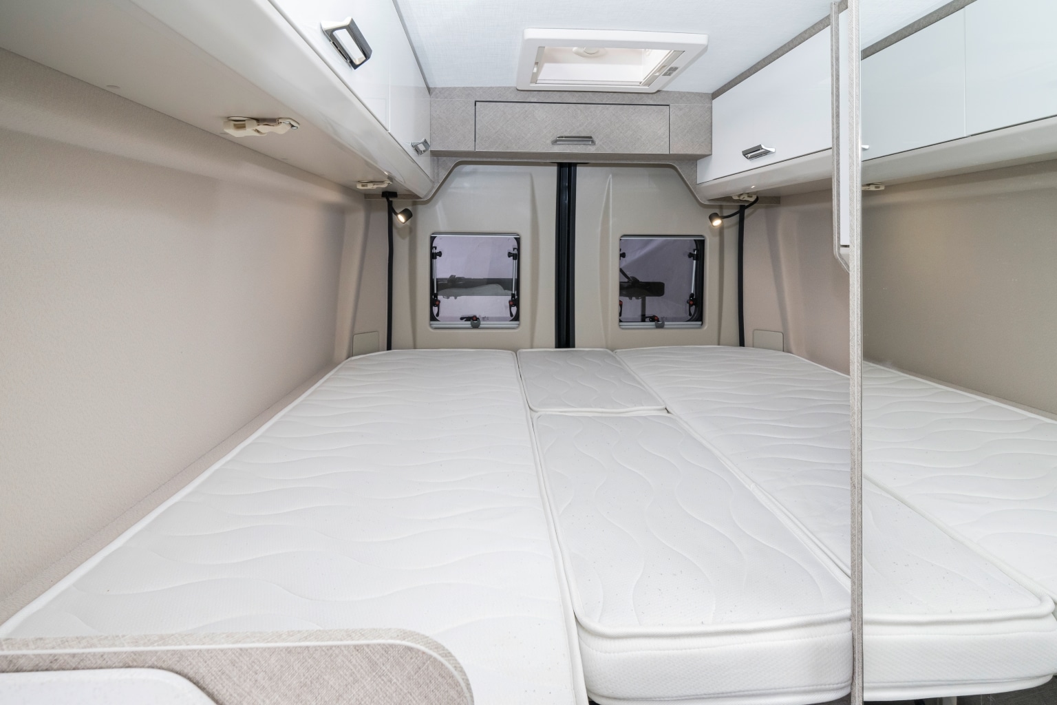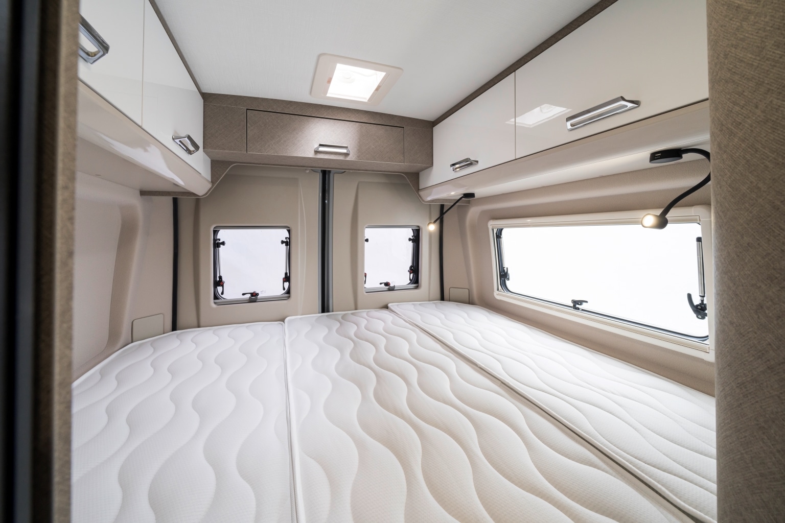 Schon vorab ist klar: Vor dem Kauf sollte sich der Camper gut überlegen, ob er große Betten oder lieber ein größeres Bad oder eine größere Küche oder doch lieber mehr Platz an der Sitzgruppe benötigt. Alles zusammen – das muss jedem Interessenten klar sein – geht nicht. Denn die sprichwörtlich Eier legende Wollmilchsau, die im kompakten Van Platz wie im ausgewachsenen Teilintegrierten bietet, gibt es nicht. Umso mehr gilt es Vor- und Nachteile der beiden Bettvarianten vor dem Kauf abzuwägen und genau zu vergleichen.