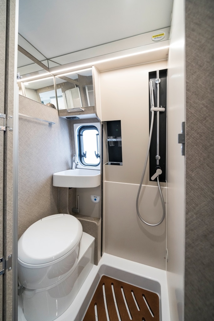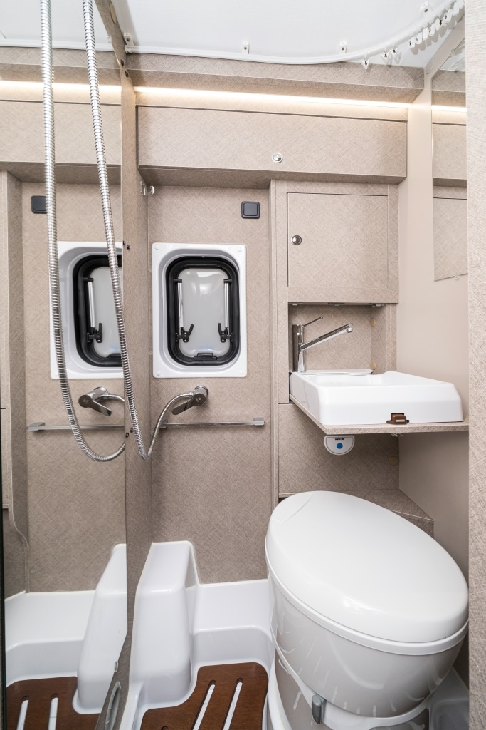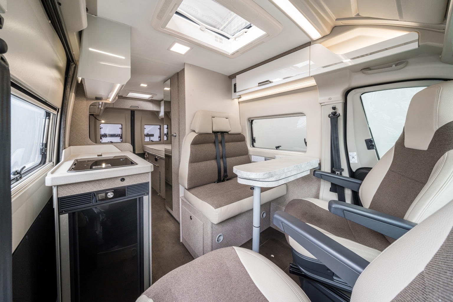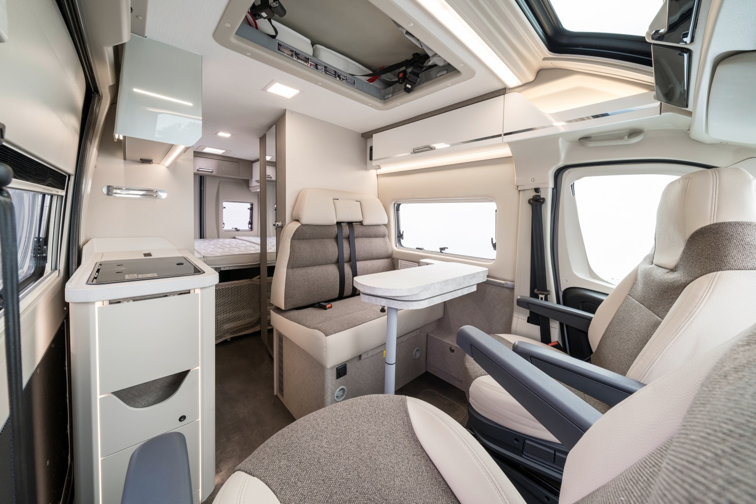 Serienausstattung u. a.: Fahrer- und Beifahrerairbag, ABS, ESP, Traktion Plus, Fahrerhaus-Klimaanlage, Tempomat, Bergabfahrhilfe, elektrische Fensterheber, elektrisch verstell- und beheizbare Außenspiegel, Zentralverriegelung mit Funkfernbedienung, Rahmenfenster, Fahrerhaus- Sitzbezüge in Wohnraumstoff, Abwassertank unterflur gegen Frost isoliert, Isofix-Gurtsystem, 3 x 230 Volt, 3 x USB-Anschlüsse, 2 x 12 Volt-Stecker.