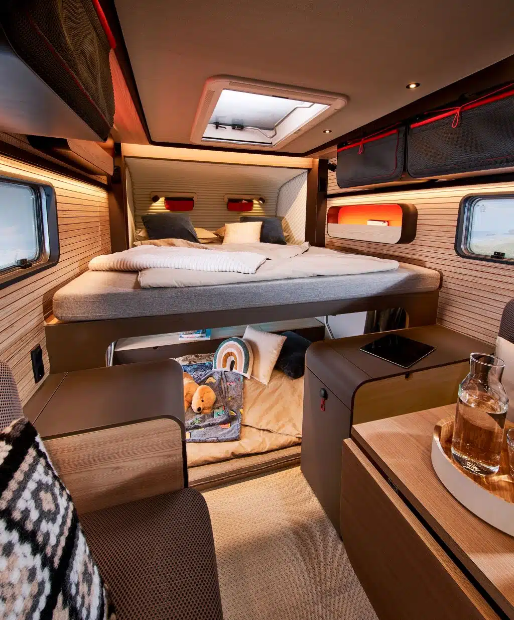 Das Bürstner EasyFlex-System soll maximale Flexibilität in den Caravan bringen. Und dies mit dem EasyFlex-Kidsroom, einer unter dem Querbett integrierten „Kinderschlafhöhle“, die tagsüber als Stauraum oder Garage dient.