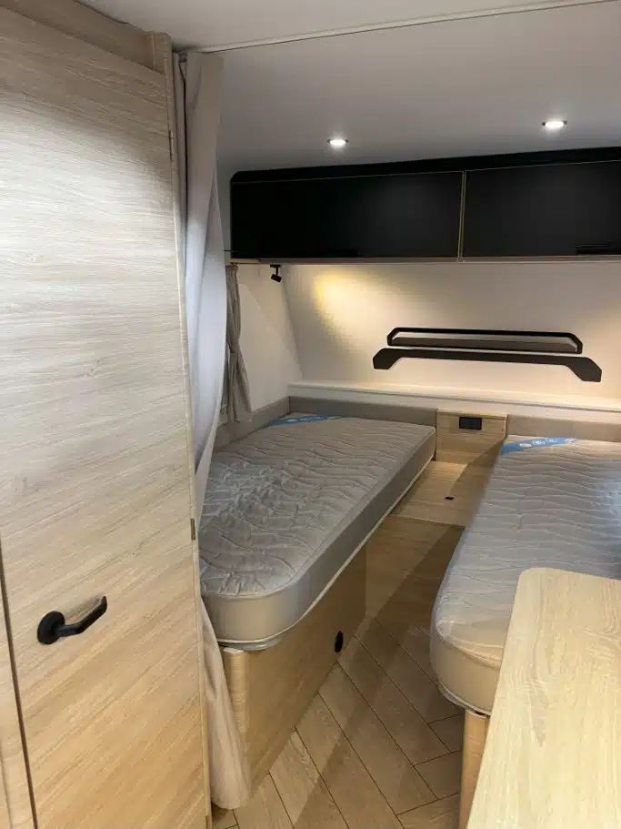 Das neue klare und moderne Möbeldesign mit kleinen schwarzen Griffen auf geraden weißen Klappen und mehr indirektes Licht gehören ebenso zu dem Konzept wie praktische Details, zum Beispiel Lesespots mit USB-A- und USB-C-Ladeanschlüssen. Im Caravelair-Programm ist der Einsteiger Alba 462 neu. Der kombiniert die v-förmigen Einzelbetten des Alba 472 der letzten Saison mit einer Dinette im Heck. Bei 930 Kilogramm Leermasse lässt sich der Wagen mit 1.050 Kilogramm Gesamtmasse nutzen. Bei den Franzosen bleiben die Einstiegspreise für die kommende Saison unverändert, aber die kaum verzichtbaren Ausstattungspakete werden im Preis leicht angehoben.