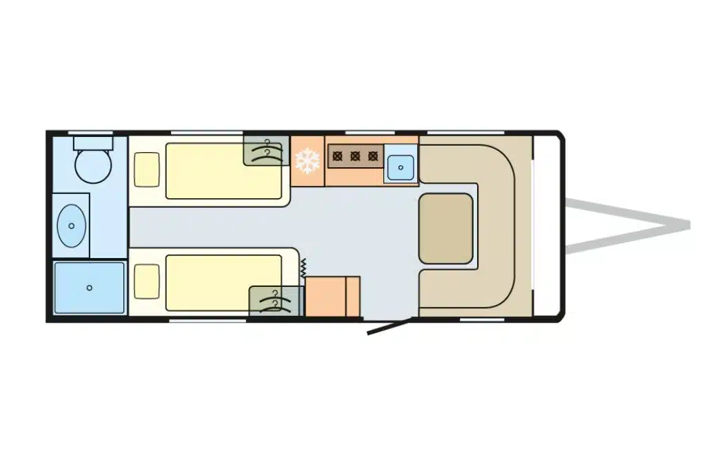 „Neue Möbel und neuer Aufbau, ohne außen groß aufzufallen, der aktuelle Adora ist deutlich, aber dezent verbessert. Die Karosserie bietet hochwertigen Isolierschaum und Wände aus GfK, beides deutliche Verbesserungen für den Einsatz bei Kälte und Dauerhaltbarkeit. Das neue Innendesign gefällt mit den hellen gewellten Klappen und der neuen bequemen Sitzgruppenlösung. Der Grundriss des 572 UT ist mittlerweile selten geworden, aber ein komfortabler, gut ausgestatteter Reisecaravan für Paare, die Einzelbetten und separate Dusche schätzen.“