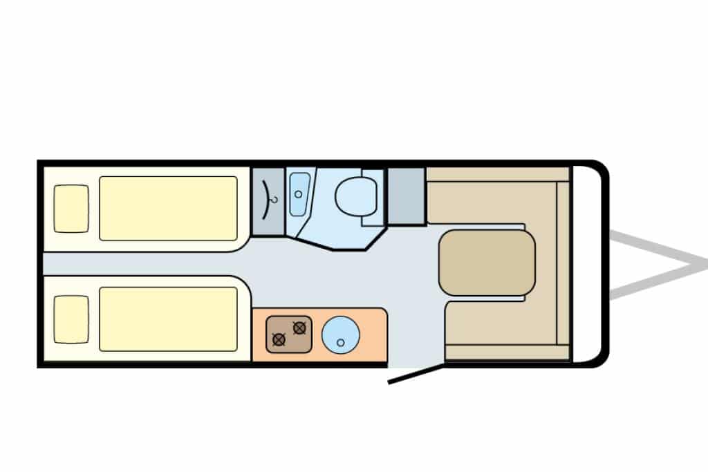 Eribas Mittelklassecaravan heißt nun Novaline und ist innen massiv überarbeitet. Dabei ist ein sehr schlichter, sehr moderner Entwurf herausgekommen, in dem doch alte Tugenden weiterleben. Mit dem Novaline 495 ist hier ein klassischer Paargrundriss im Test.