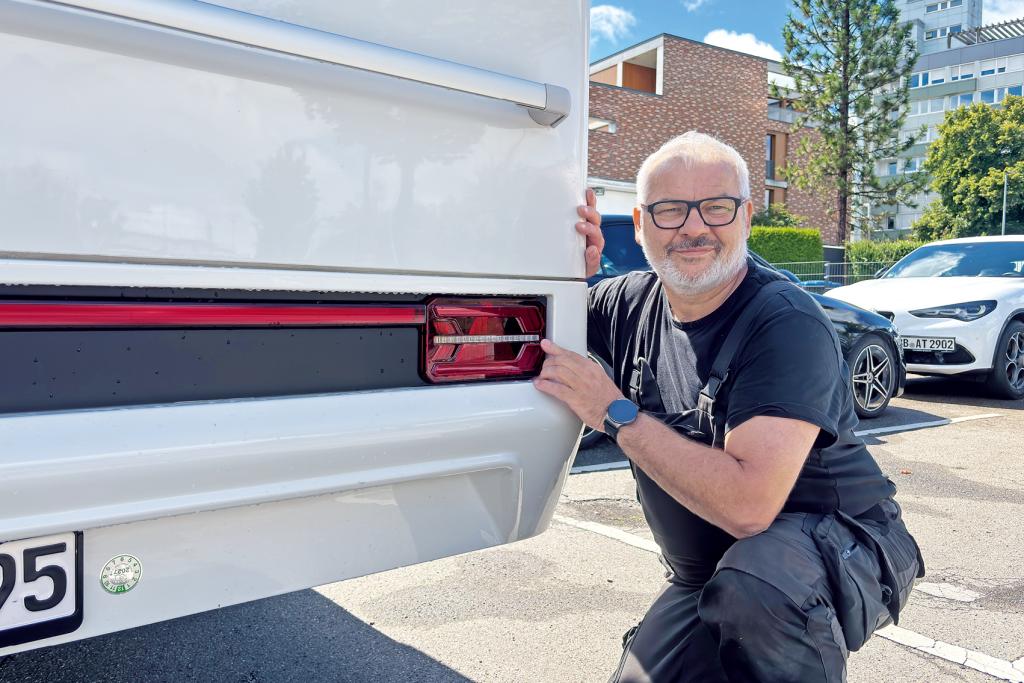 An Kantenradien und Beleuchtung hat der Profi am Novaline nichts auszusetzen. Natürlich fällt ihm die umfangreiche Ausstattung auf. „Außenanschlüsse für Gas, Wasser, Strom und TV, dazu die Klimaanlage, der Rangierantrieb samt Batterie und die APP-Anbindung mit diversen Sensoren – da bleibt wenig bis nichts zu wünschen übrig.“