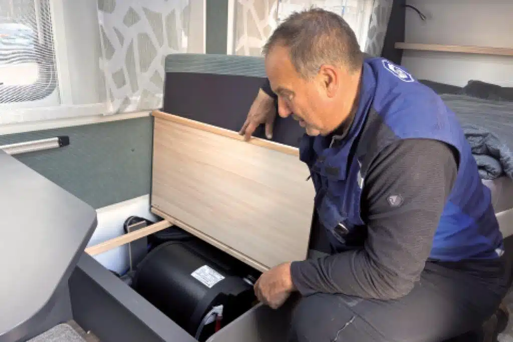Serienmäßig kommt der Apero Activ mit der Combiheizung, die mit integriertem 10-Liter-Boiler neben Warmluft auch für heißes Wasser sorgt – der große Boiler ist fast schade in einem Grundriss, der keinen Platz für eine sinnvoll nutzbare Duscheinrichtung bietet. Sechs Warmluftauslässe reichen im 390 FH, um den Wagen schnell warm zu bekommen und zu halten. Im Testwagen sorgt die optionale Klimaanlage bei Bedarf für Kühlung.