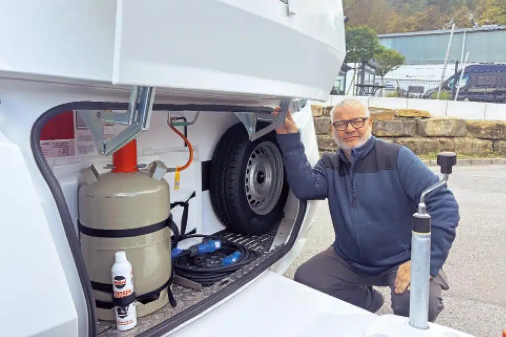 Das Heck punktet zudem mit einzeln tauschbaren Ecken. Der Flaschenkasten ist innen korrekt abgedichtet und mit Haltern für den Abwassertank, Gasflaschen und das Ersatzrad bestens aufgeräumt. Mit Riffelblechboden und der weit öffnenden Klappe am Parallelogrammbeschlag ist er konstruktiv top.