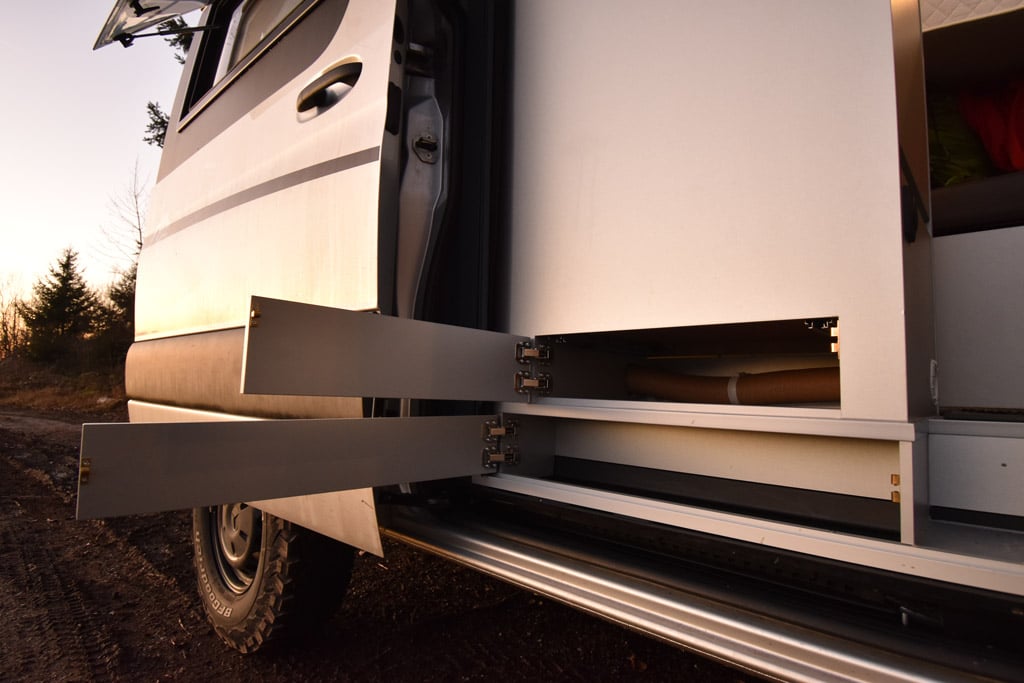 Das Schott zum Laderaum bietet viel Stauraum und lässt sich ohne Werkzeug herausnehmen. Bei La Strada wird kein Platz verschenkt – die Kunst liegt darin, alles wiederzufinden, was man verstaut hat.
