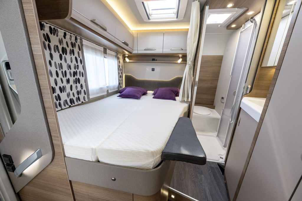 Knaus ergänzt sein Portfolio um das 220 Zentimeter schmale und knapp sechs Meter lange Modell Van TI 550 MF auf Fiat Ducato- Basis (ab 58.290 Euro), das auch als Vansation-Modell mit üppiger Serienausstattung und Preisvorteil (14.711 Euro) ab 61.499 Euro angeboten wird. Das Längsheckbett misst 194 mal 140/105 Zentimeter, im großen Bad daneben lässt sich eine Duschkabine abtrennen. Halbdinette und Längsküche sind Standard.